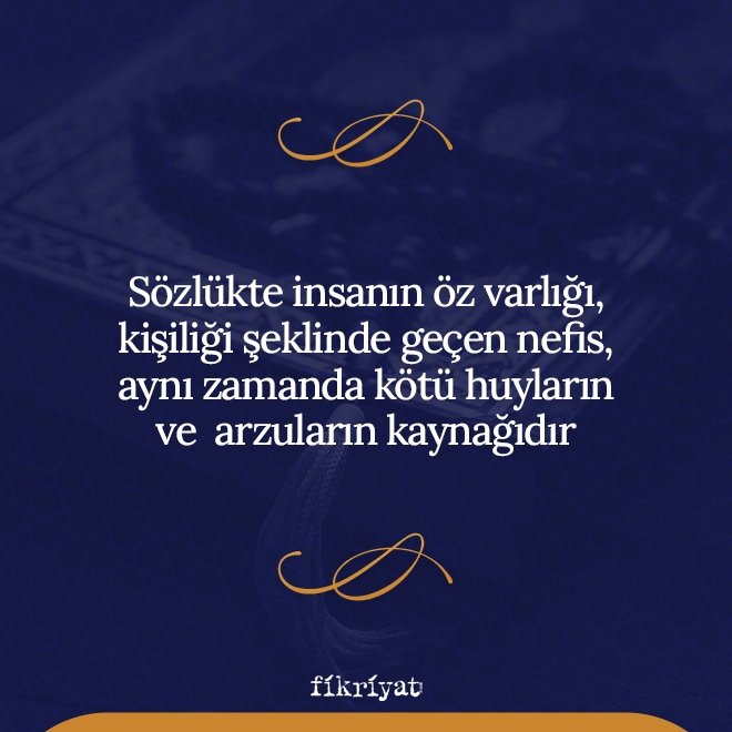 🔹 Sözlükte insanın öz varlığı, kişiliği şeklinde geçen nefis, aynı zamanda kötü huyların ve süflî arzuların kaynağıdır.
