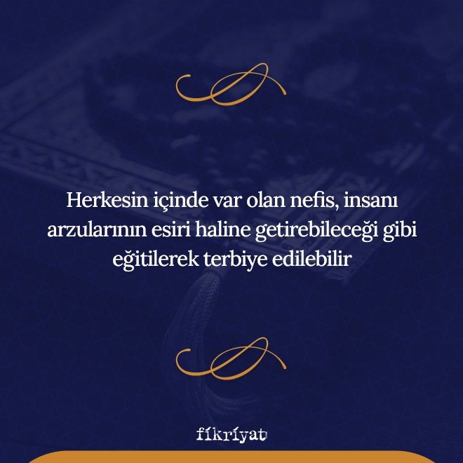 🔹 Herkesin içinde var olan nefis, insanı arzularının esiri haline getirebileceği gibi eğitilerek terbiye de edilebilir. Bu kişinin kendi elinden gelen en mühim cihad olarak kabul edilir.