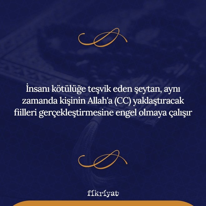 🔹 İnsanı kötülüğe teşvik eden şeytan, aynı zamanda müminleri Allah'a (CC) yaklaştıracak fiilleri gerçekleştirmesine de engel olmaya çalışır. Şeytanın hileleri, kulun yerine getirmeye çalıştığı ibadeti bozmaya gayret göstermesi, ibadetini bozamadığı durumlarda ise işlediği sevabın niyetini saptırma çabası ve daha niceleridir.