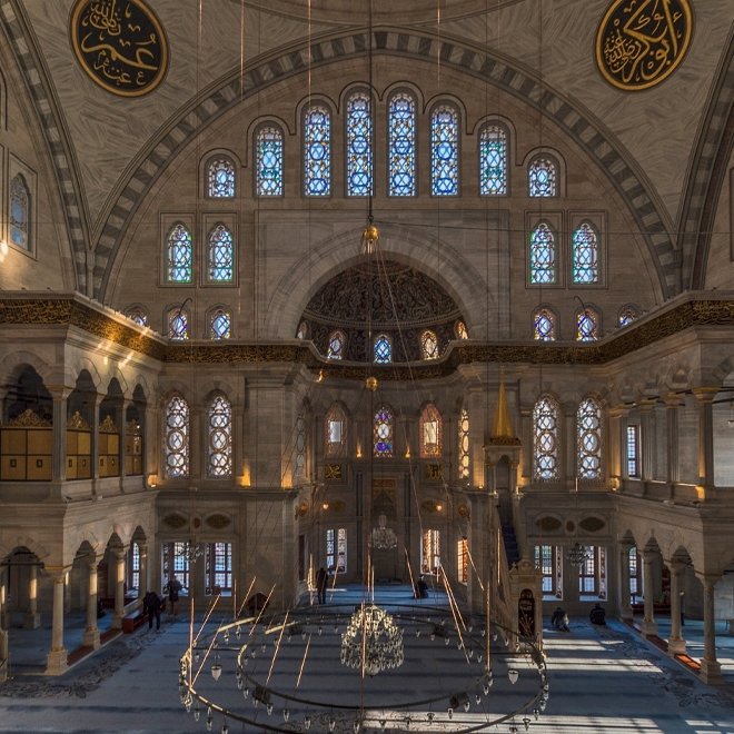 ➡ Nuruosmaniye Camii'ni diğer Selatin camilerden ayıran en önemli amillerden birisi de kesintisiz olarak bir surenin cami içinde sadece bir kuşağa yazılmasıdır.
