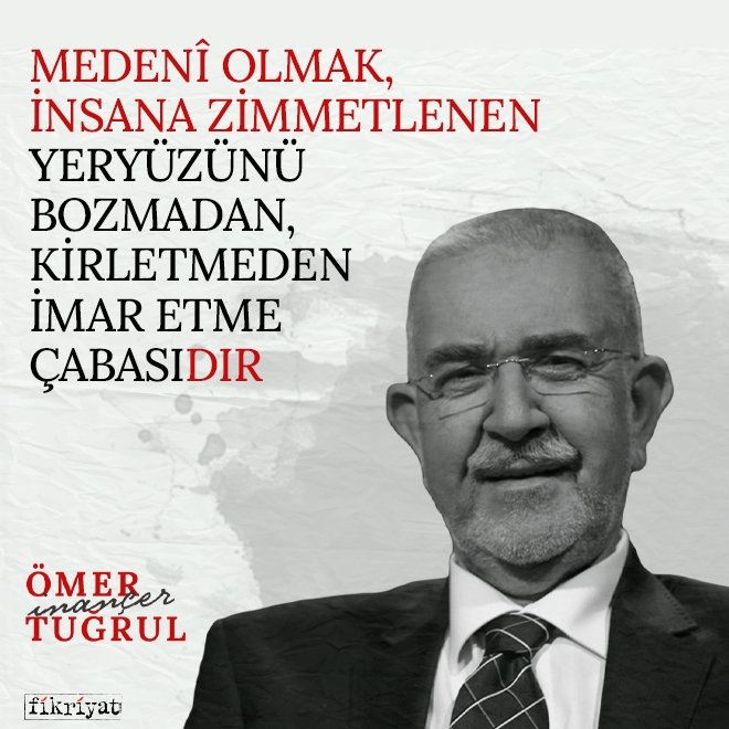 "Medenî olmak, insana zimmetlenen yeryüzünü bozmadan, kirletmeden imar etme çabasıdır."