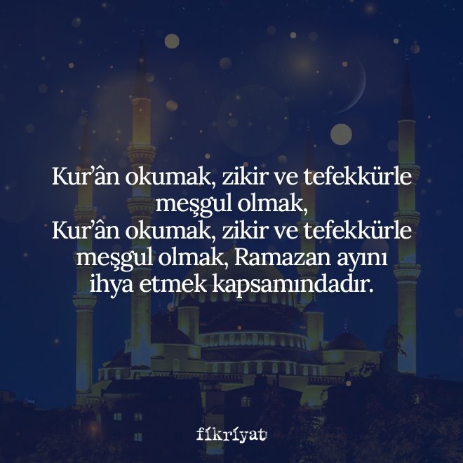 🔹 Ramazan ayını ihya etmek, son derece önemlidir. Kur'ân okumak, zikir ve tefekkürle meşgul olmak, Hz. Peygamber'in hayatını okumak, ilimle meşgul olmak, dinî sohbetlere, ahlakî ve sosyal içerikli etkinliklere katılmak Ramazan ayını ihya etmek kapsamındadır. Şu hadis bunun açık delilidir: "Beş vakit namaz, cuma namazı diğer cuma namazına kadar, Ramazan ayı diğer Ramazan ayına kadar büyük günahlardan kaçındığı zaman işlenen küçük günahlara kefarettir." (Müslim, "Tahâre", 17) İçki, kumar, zina, hırsızlık, yalan ve gıybet, namaz kılmama, malın zekâtını vermeme gibi büyük günahlardan kurtulmak için şartlarına uygun tövbe ve istiğfar yapılması gerekir.