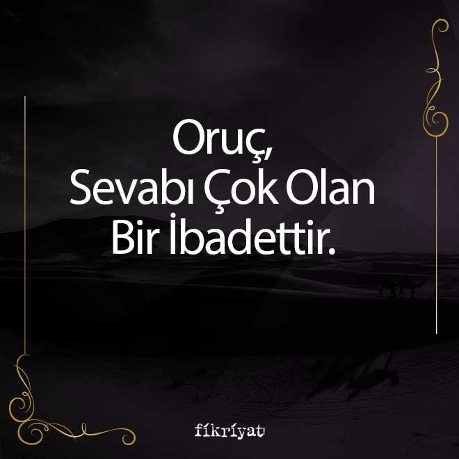 ⚫ Oruç riyanın en az karışacağı bir ibadet olduğu için sevabı en fazla olan ibadetlerden sayılmıştır. Yüce Allah, ibadetlere on katından yedi yüz katına kadar sevap verir. Oruç ibadetine ise Allah'ın verdiği sevap, sınırsızdır.