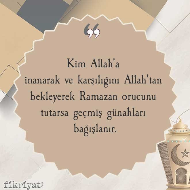 "Kim Allah'a inanarak ve karşılığını Allah'tan bekleyerek Ramazan orucunu tutarsa geçmiş günahları bağışlanır." Buhârî, İmân, 28