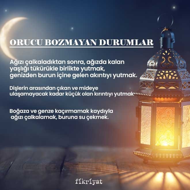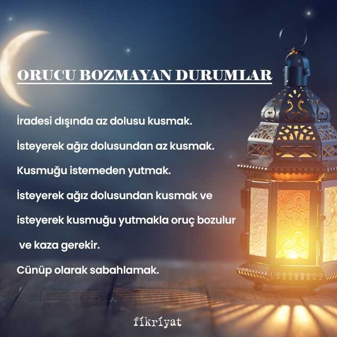 📌Bilerek ve isteyerek yapılması halinde orucu bozan şeyler unutarak yapıldığında oruç bozulmaz.