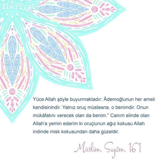 "Şâban, ecellerin yazıldığı bir aydır. Ben, oruçlu iken ecelimin tayin edilmiş olmasını istiyorum."