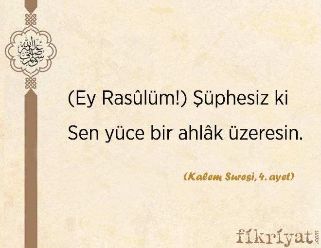 "(Ey Rasûlüm!) Şüphesiz ki Sen, yüce bir ahlâk üzeresin!"