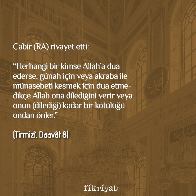 (Tirmizî, Daavât 88 - İbn-i Mâce, Duâ 5)