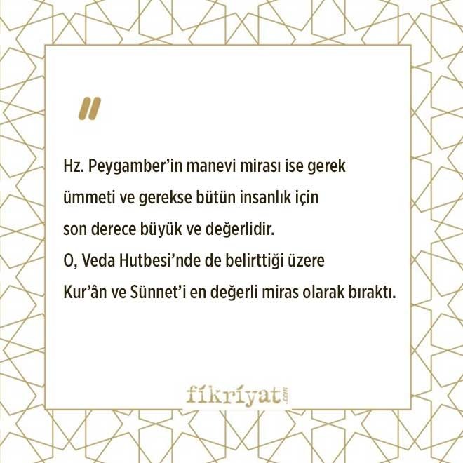 Rasul-i Ekrem'den geriye son derece mütevazı bir miras kalmıştır. Zira kendisi "Biz peygamberler zümresi miras bırakmayız. Bizim geride bıraktığımız her türlü servet sadakadır" buyurmuştu. Allah Resulü (sav) vefatından sonra ne dinar ne de bir köle bıraktı. Sadece binmekte olduğu beyaz katırı, silahı ve yolcular için vakfettiği Fedek ve Hayber'deki arazisi kaldı. Ölümünden kısa bir süre önce bununla Allah'ın huzuruna çıkmaktan hayâ edeceğini söyleyerek elinde kalan 7 dirhemin fakirlere dağıtılmasını istedi. Kendisine ait bir zırh da borcu karşılığında bir Yahudi'nin elinde rehin olarak bulunuyordu.