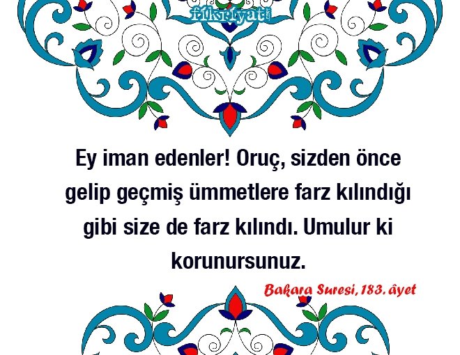 Ey iman edenler! Oruç, sizden önce gelip geçmiş ümmetlere farz kılındığı gibi size de farz kılındı. Umulur ki korunursunuz.