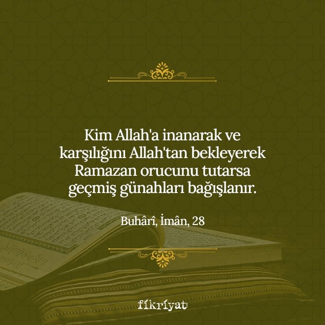 "Ramazan ayının ilk gecesi olunca, şeytanlar ve azgın cinler zincire vurulur, cehennem kapıları kapatılır ve hiçbiri açılmaz.