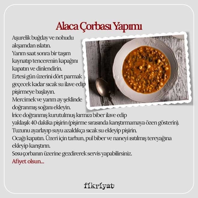 ◾ Aşurelik buğday ve nohudu akşamdan ıslatın.