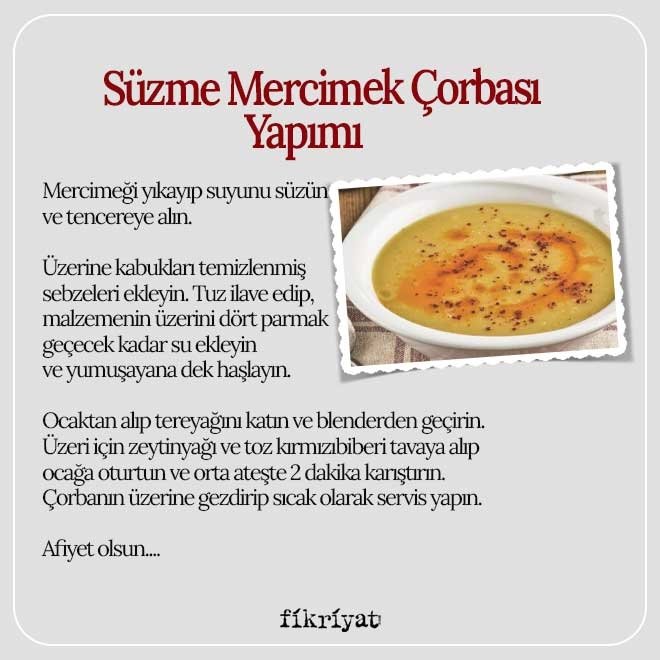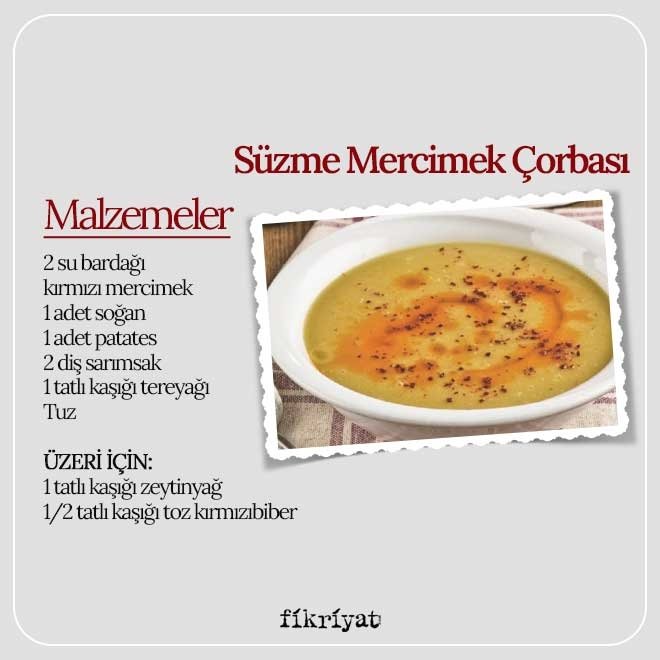 - Süzme Mercimek Çorbası