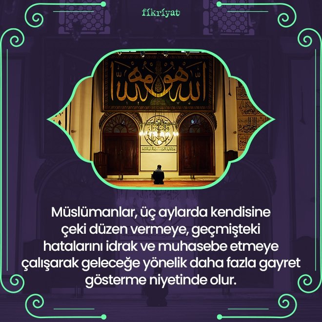 🔹 Müslümanlar, bu aylarda kendisine çeki düzen vermeye, geçmişteki hatalarını idrak ve muhasebe etmeye çalışarak geleceğe yönelik daha fazla gayret gösterme niyetinde olur.