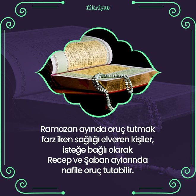 🔹 Üç aylarda yapılan nafile ibadetlerden biri, oruç tutmaktır. Ramazan ayında oruç tutmak farz iken sağlığı elveren kişiler, isteğe bağlı olarak Recep ve Şaban aylarında nafile oruç tutabilir.