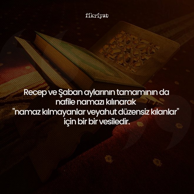 🔸 Recep ve Şaban aylarının tamamının da nafile namazı kılınarak "namaz kılmayanlar veyahut düzensiz kılanlar" için bir bir vesiledir.