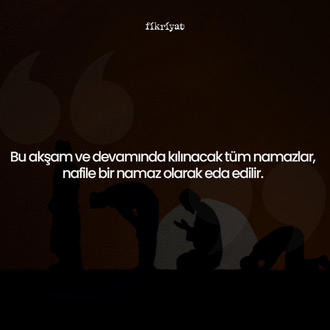 ◾ Bu akşam ve devamında kılınacak tüm namazlar, nafile bir namaz olarak eda edilir. Bu ibadetleri ihya etmek "Üç aylar" içerisinde katbekat daha sevaptır.