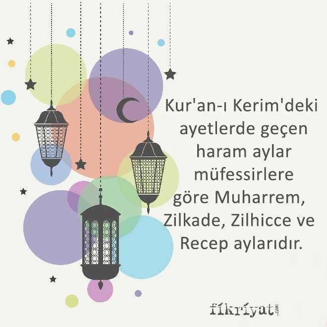➡ Kur'an-ı Kerim'deki ayetlerde geçen haram aylar müfessirlere göre Muharrem, Zilkade, Zilhicce ve Recep aylarıdır.
