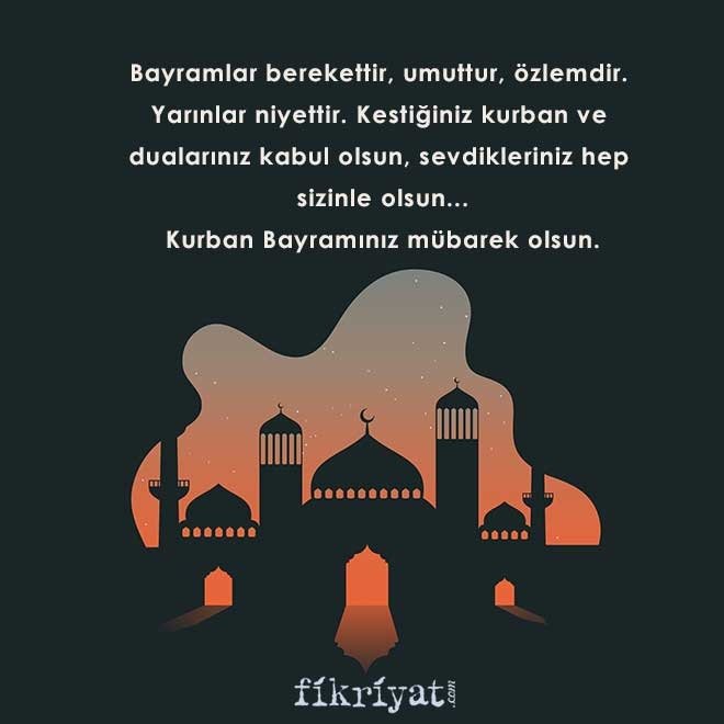 Bayramlar berekettir, umuttur, özlemdir. Yarınlar niyettir. Kestiğiniz kurban ve dualarınız kabul olsun, sevdikleriniz hep sizinle olsun.. Kurban Bayramınız mübarek olsun.