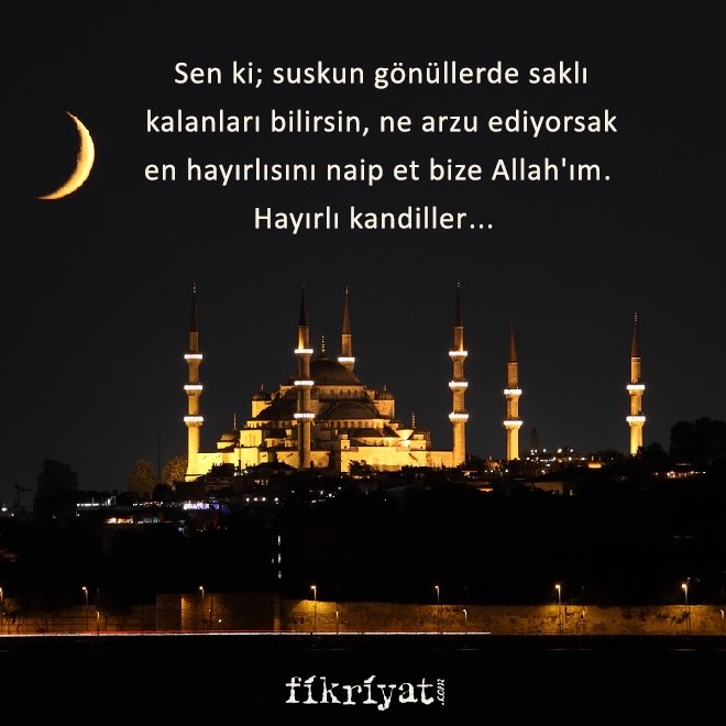 Sen ki; suskun gönüllerde saklı kalanları bilirsin, ne arzu ediyorsak en hayırlısını naip et bize Allah'ım... Hayırlı kandiller.