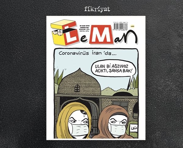 ◾ Sözde mizah dergisi Leman, İslam'a ve Müslümanlara karşı nefretini Koronavirüs salgını esnasında da göstermişti. 26 Şubat 2020 tarihli Leman kapağında koronavirüse karşı önlem almak amacıyla maske takan iki tesettürlü kadın üzerinden tesettür ile dalga geçilmişti.