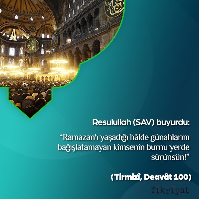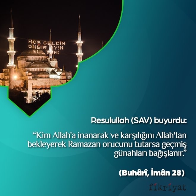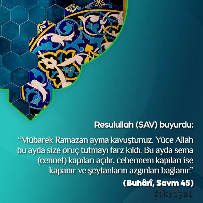 "Mübarek Ramazan ayına kavuştunuz. Yüce Allah bu ayda size oruç tutmayı farz kıldı. Bu ayda sema (cennet) kapıları açılır, cehennem kapıları ise kapanır ve şeytanların azgınları bağlanır."