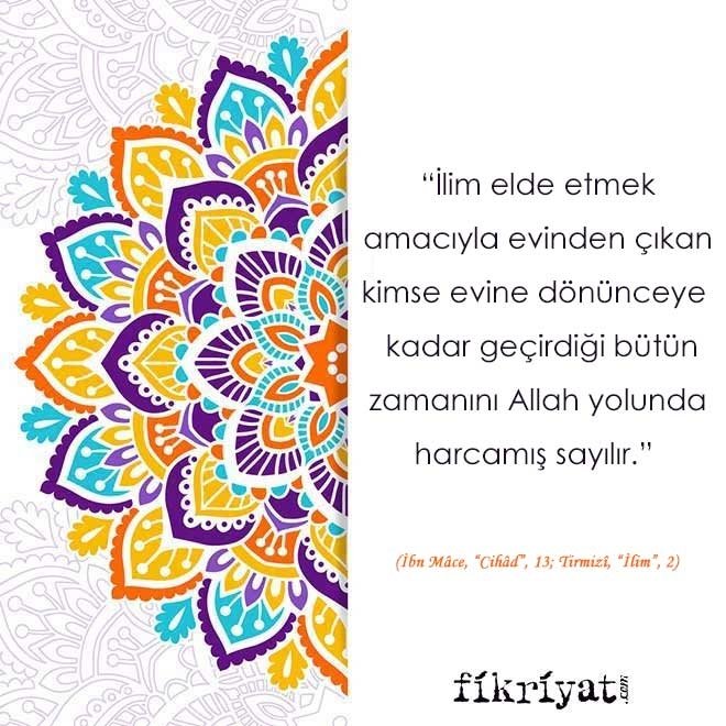"İlim elde etmek amacıyla evinden çıkan kimse evine dönünceye kadar geçirdiği bütün zamanını Allah yolunda harcamış sayılır." (İbn Mâce, "Cihâd", 13; Tirmizî, "ʿİlim", 2)