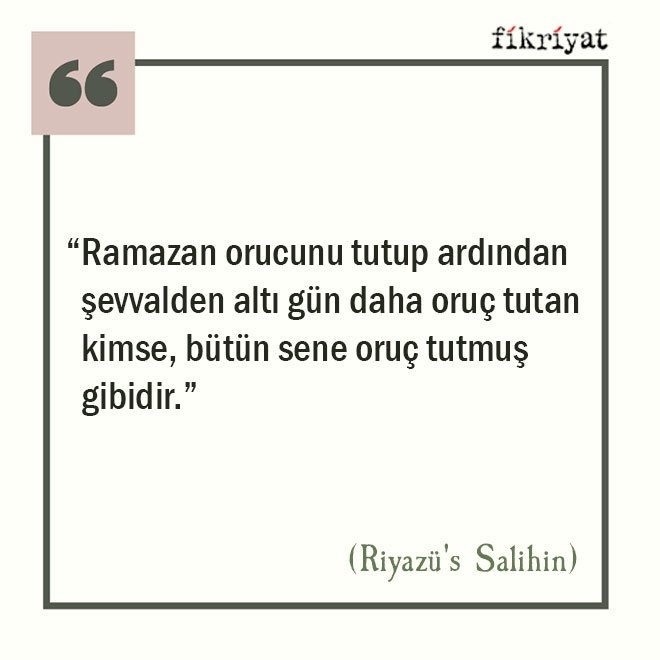 🔸 "Ramazan orucunu tutup ardından şevvalden altı gün daha oruç tutan kimse, bütün sene oruç tutmuş gibidir."