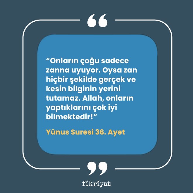 "Onların çoğu sadece zanna uyuyor. Oysa zan hiçbir şekilde gerçek ve kesin bilginin yerini tutamaz. Allah, onların yaptıklarını çok iyi bilmektedir!"