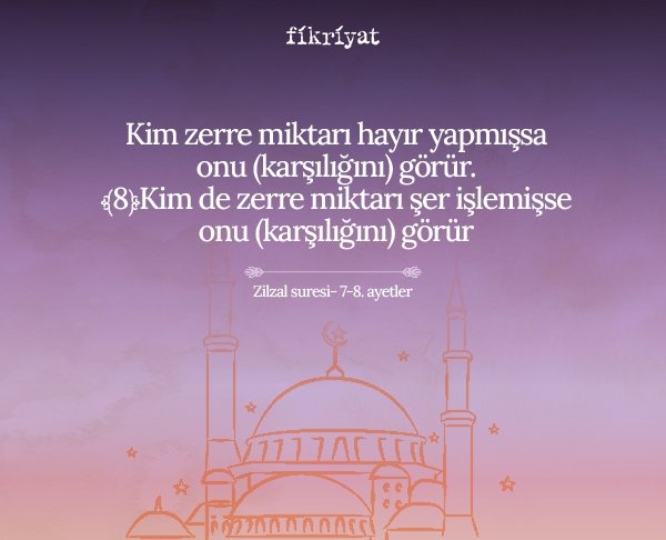 Kim zerre miktarı hayır yapmışsa onu (karşılığını) görür.﴾8﴿Kim de zerre miktarı şer işlemişse onu (karşılığını) görür.