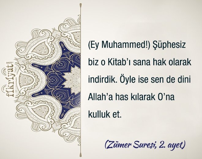 (Ey Muhammed!) Şüphesiz biz o Kitab'ı sana hak olarak indirdik. Öyle ise sen de dini Allah'a has kılarak O'na kulluk et.