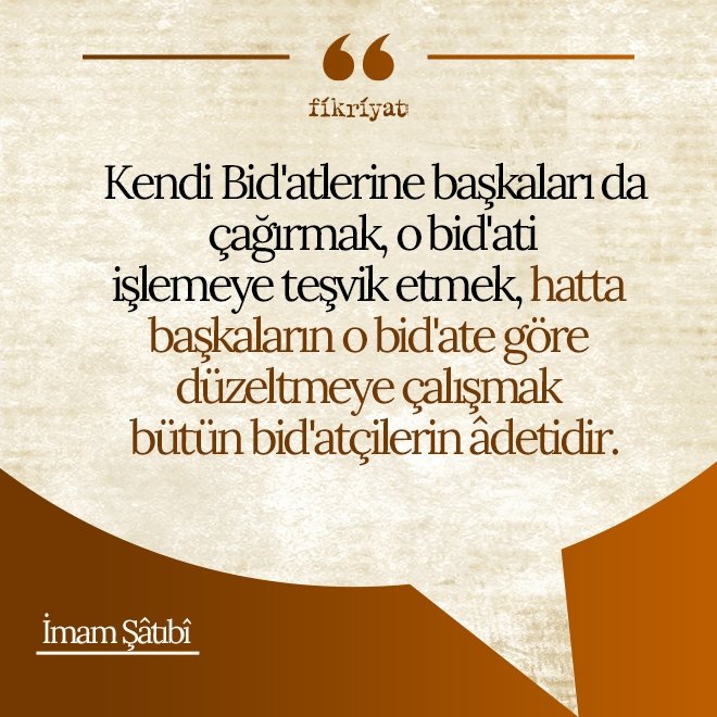 Endülüs İslam dünyasının önemli düşünürlerinden olan Şâtıbî; akli ve dini ilimlerin birçoğunda kendini yetiştirmiş, Kur'an ve Sünnet'i esas alan bir yöntem izlemiştir. Şâtıbî, İslam'ın temel ilkelerine ulaşarak dini bu çerçevede değerlendirmiştir. Yaşadığı dönemde yaygın olan ibadet ve uygulamaların Kur'an ve sünette aykırı olduğunu açıklamış ve bunları bid'at olarak nitelendirip yanlış uygulamalarla mücadele etmiştir. Bu uğraşın sonucunda bid'atin tehlikelerini ayet ve hadisler ışığında açıkladığı El- İtisam isimli zengin bir eser ortaya koymuştur. El- İ'tisam, on bölümden meydana gelen ve bid'at kavramını, bu tanıma dahil olan şeyleri, bid'at ehlini, onların sebep olduğu tehlikeleri açıklayan bir eserdir. Şâtıbî'nin El- İ'tisâm eserinden önemli alıntıları sizler derledik.