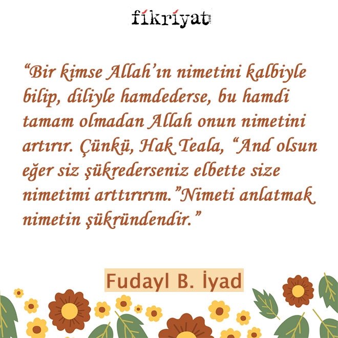 📌 "Bir kimse Allah'ın nimetini kalbiyle bilip, diliyle hamdederse, bu hamdi tamam olmadan Allah onun nimetini artırır. Çünkü Hak Teala, "And olsun eğer siz şükrederseniz elbette size nimetimi arttırırım." Nimeti anlatmak nimetin şükründendir."