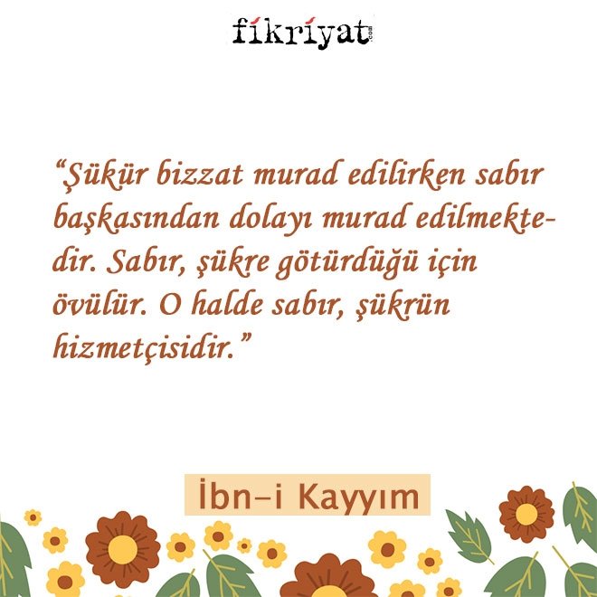 📌 "Şükür bizzat murad edilirken sabır başkasından dolayı murad edilmektedir. Sabır, şükre götürdüğü için övülür. O halde sabır, şükrün hizmetçisidir."