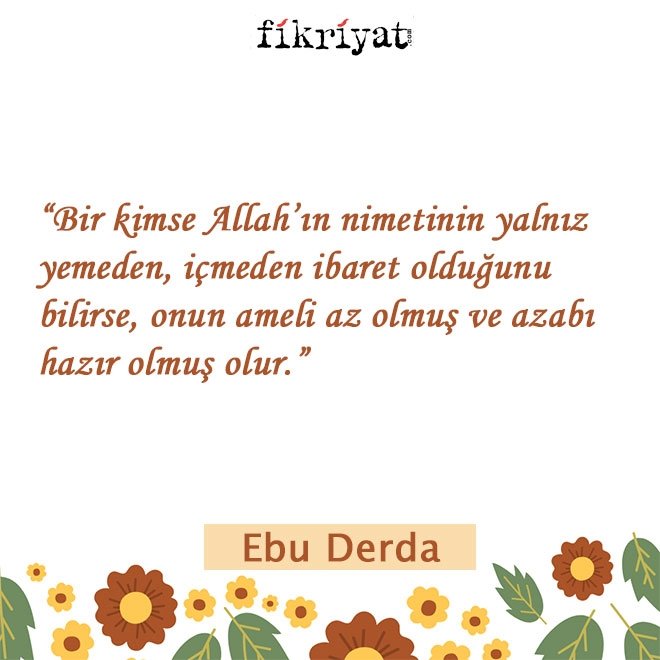 📌 "Bir kimse Allah'ın nimetinin yalnız yemeden, içmeden ibaret olduğunu bilirse, onun ameli az olmuş ve azabı hazır olmuş olur."