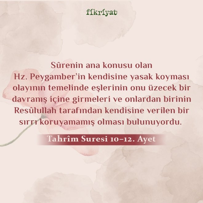 Ku'an-ı Kerim'in 66. suresi, Tahrim Suresi'dir. Medine'de nazil olan sure,12 ayetten oluşmaktadır. Tahrim, "haram kılma, haram kılınma" manalarına gelen bir isimdir. Bu kelime, birinci ayette geçmektedir. Surede, sevgili Peygamberimizin hayatından, insanların kendilerini ve ailelerini kötülüklerden korumasının gereğinden bahsedilmektedir. İşte, Tahrim suresi tefsiri, fazileti ve meali...
