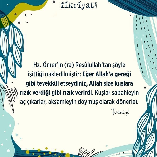 Tevekkül, kelime olarak Allah'a güvenip dayanma anlamına gelir. Tevekkül, bir kimsenin kendini Allah'a teslim etmesi, rızkında ve işlerinde Allah'ı kefil bilip sadece O'na güvenmesidir. Tevekkül, bizi hayra götürecek sebeplere sarılıp çalışmak, Allah'ın bizim yardımcımız olduğunu unutmamak ve işin sonucunu Allah'a bırakmak ve sonucuna rıza göstermektir. Mukaddes kitabımız Kur'an-ı Kerim'de "Müminler sadece Allah'a tevekkül etsinler", "Kim Allah'a tevekkül ederse, O, ona yeter" gibi ayetlerle tevekkül etmenin önemi vurgulanır. Tevekkül ile ilgili hadisleri derledik.