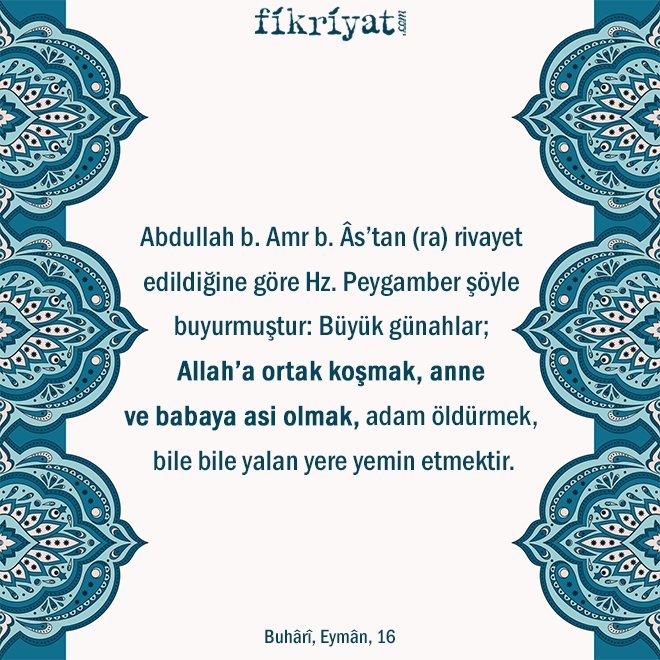 Buhârî'nin diğer bir rivayeti de şöyledir: Bir bedevi Hz. Peygamber'e gelip "Ey Allah'ın Resûlü, büyük günahlar nelerdir" diye sordu. Resûlullah "Allah'a şirk koşmak" dedi. Bedevi "Sonra hangisidir" deyince "Gamûs yemini" buyurdu. Ravi Abdullah b. Amr diyor ki: "Ey Allah'ın Resûlü, gamûs yemini nedir" dedim. Resûlullah: "Bir Müslümanın malından alabilmek için yalan yere edilen yemindir" buyurdu.