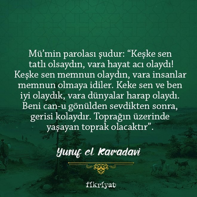 2022 yılında Daru'l Ukba'ya uğurladığımız Yusuf el Karadavi; ömrünü mukaddes dinimiz İslam'ın hükümlerini açıklamaya adamış, önemli gördüğü hususlarda eserler telif etmiş, Dünya Müslüman Alimler Birliği'ni kurmuş mücadeleci bir alimdi. Gençliğe bilhassa önem veren Karadavi bazı eserlerinde gençlerin daha kolay anlayabilmesi için daha açık bir anlatımı benimsemişti. Sizler için Yusuf el Karadavi'nin İmam ve Hayat kitabondan önemli alıntıları derledik.