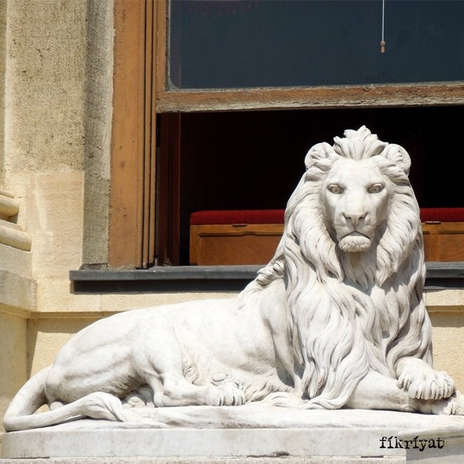 *Fotoğrafta, Beylerbeyi Sarayı Mermer Köşkü'nün girişince "Dinlenen Aslanlar" heykelini görmektesiniz*