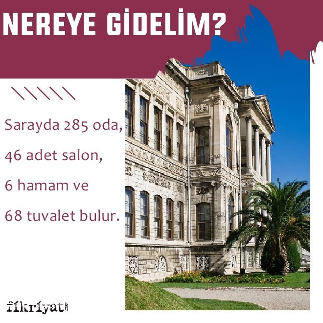 📍 Dolmabahçe Sarayı'nın ana yapıları; Harem, Mabeyn, Saat Kulesi ve Dolmabahçe Camisi'dir. Tarihi yapıda, 285 oda ve 46 adet salon, 6 hamam ve 68 tuvalet bulur.
