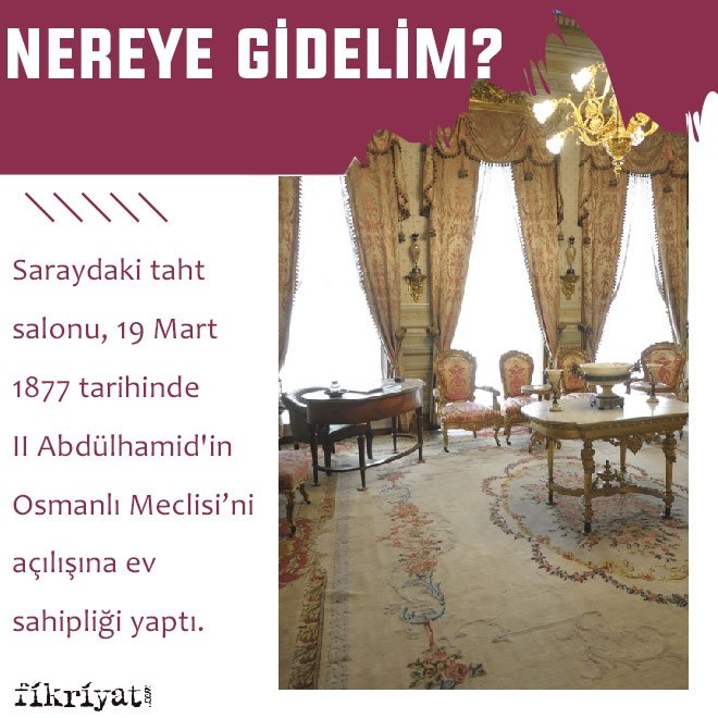 📍 Taht Salonu, 19 Mart 1877 tarihinde II Abdülhamid'in Osmanlı Meclisi'ni açılışına ev sahipliği yaptı. Ayrıca Harem'de, Taht Salonu'nun izlenebileceği bir koridor vardır.