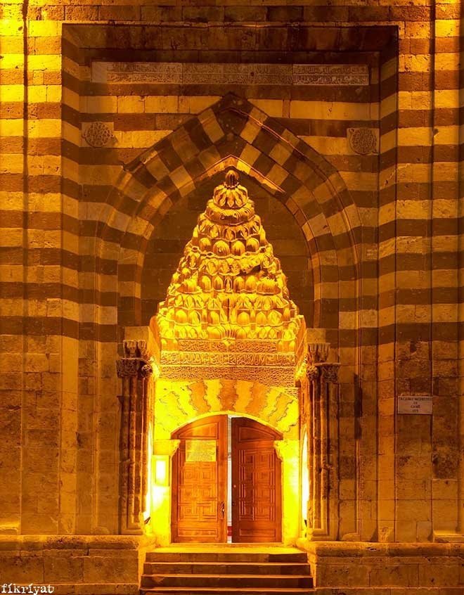 🔸 Medrese oldukça sade bir şekilde inşa edilmiş olup, bu sadelik özellikle dış cephede bulunan tezyin edilmiş mimari elemanların daha ön plana çıkmasına neden olur. Ön cephede taçkapı; renkli taşları, farklı şekillere sahip sütunları, farklı tür kemerleri, nişleri, ayetlerin ve bina ile banisi hakkında bilgilerin yazılı olduğu kitabeleri ve dengeli bir şekilde yerleştirilmiş mukarnasıyla göz doldurucu bir şekilde ön plana çıkar.