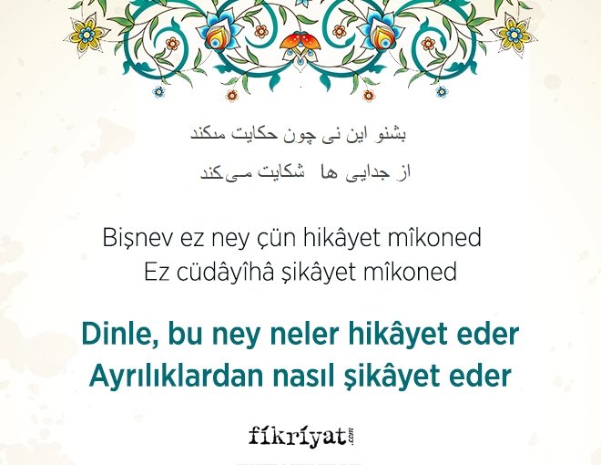 Mevlana'nın 25 bin beyitlik mesnevisinin ilk 18 beyiti oldukça önemlidir. Bizzat Mevlana Celaleddin Rumi'nin kaleme aldığı bu beyitler, Mesnevi-i Şerif'in özünü oluşturur. İşte "Dinle, bu ney neler hikayet eder, ayrılıklardan nasıl şikayet eder." beyitiyle başlayan Mesnevi-i Şerif'in ilk 18 beyiti...