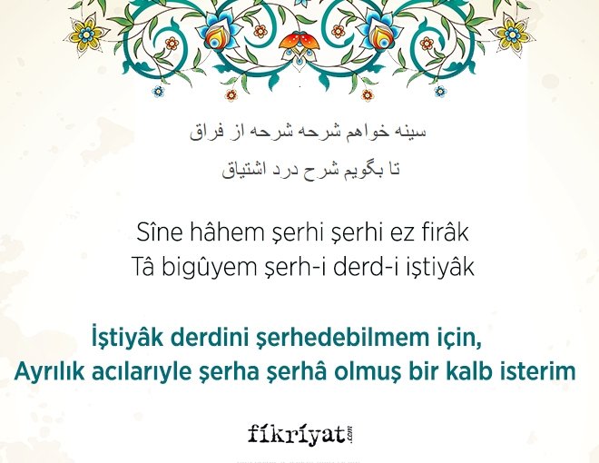 ◾ Mevlana'nın yazdığı bu ilk 18 beyitte, neyin ağzından konuşur. İşte Mesnevî-i Şerif'in özünü oluşturan ilk on sekiz beyit…