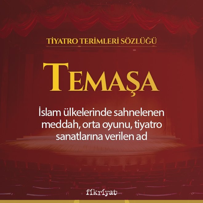 🔸 TEMAŞA: İslam ülkelerinde sahnelenen meddah, orta oyunu, tiyatro sanatlarına verilen addır.