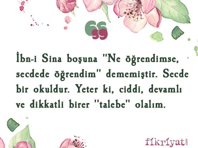 "İbn-i Sina boşuna ''Ne öğrendimse, secdede öğrendim'' dememiştir. Secde bir okuldur. Yeter ki, ciddi, devamlı ve dikkatli birer ''talebe '' olalım."