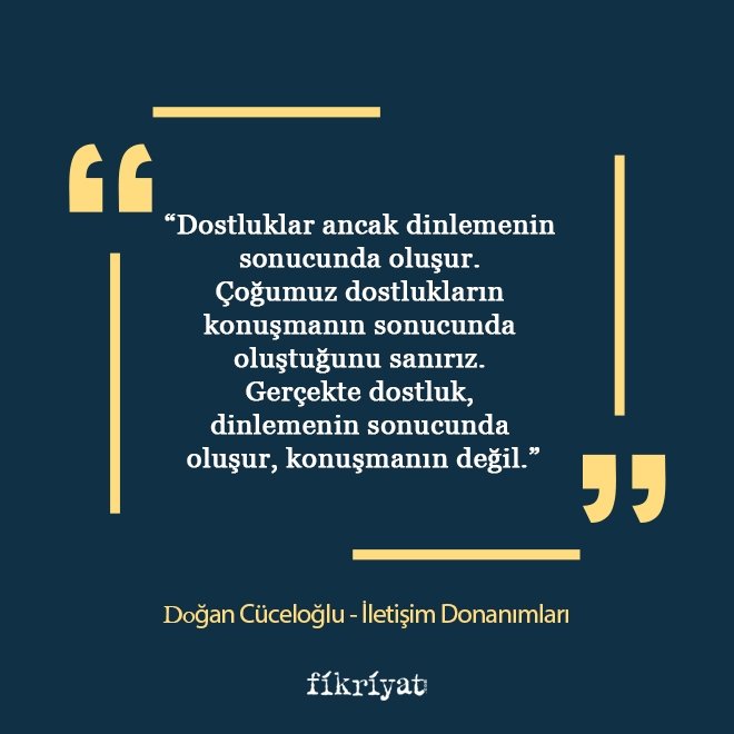 İletişim Donanımları kitabında Doğan Cüceloğlu bizlere iletişimin nasıl başladığını, devam ettiğini ve nelerden etkilendiğini anlatır. İletişimin iki insanın birbirini fark ettiği anda başladığını ifade ederek tepki vermemenin ve "hiçbir şey konuşmamanın" bile iletişim sayıldığını söyler. İletişime dair hayatın içinden örneklerle anlatımını güçlendirir. Sizler için "İletişim Donanımları" kitabından alıntılar hazırladık...