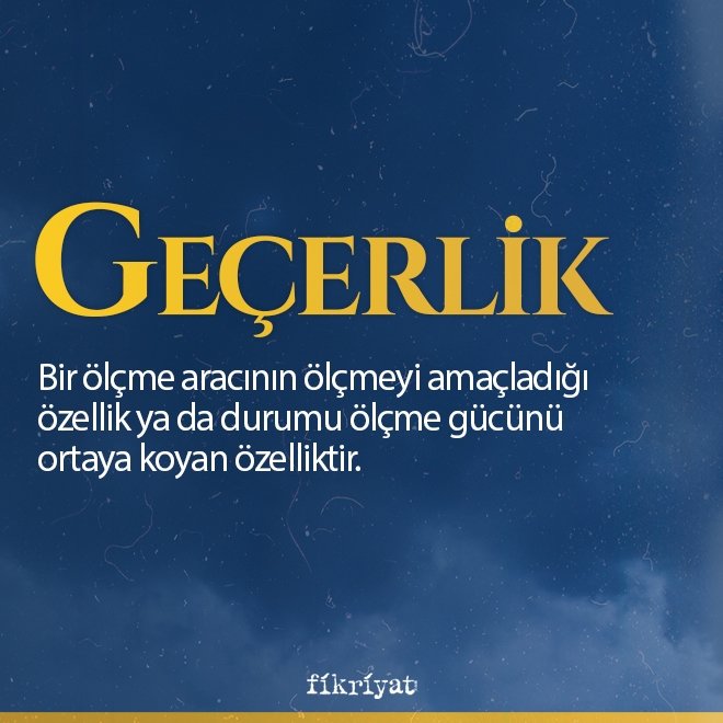 🔹 Bir ölçme aracının ölçmeyi amaçladığı özellik ya da durumu ölçme gücünü ortaya koyan özelliktir. Test sahiden test etmesi gereken olguyu test ediyor mu? sorusunun cevabını arar.