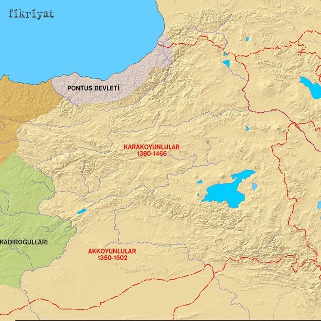 🔹 Akkoyunlular ve Karakoyunlular, 1300'lü yıllarda küçük birer beylik olarak ortaya çıktılar. Karakoyunlu Devleti Van merkezli, Akkoyunlular Diyarbakır merkezli olarak kuruldu.